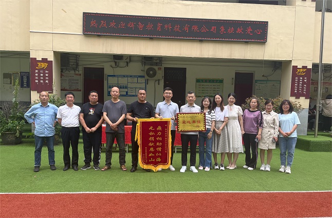 为表达谢意,夏家村小学向辉智教育回赠了爱心证书和锦旗并合影留念。