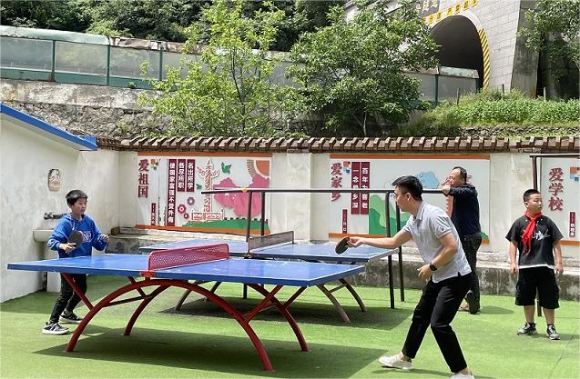 和孩子一起打乒乓球